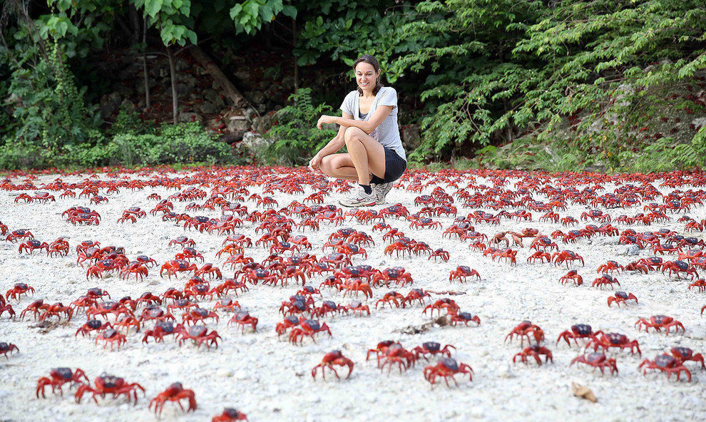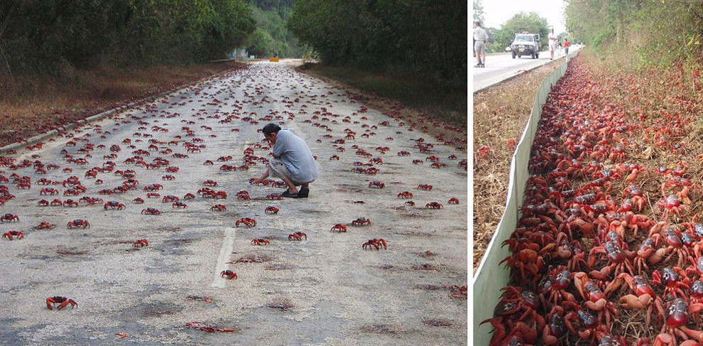 크리스마스 섬에서는 매년 4,300만 마리의 홍게들이 산란을 위해 바다로 이동합니다.