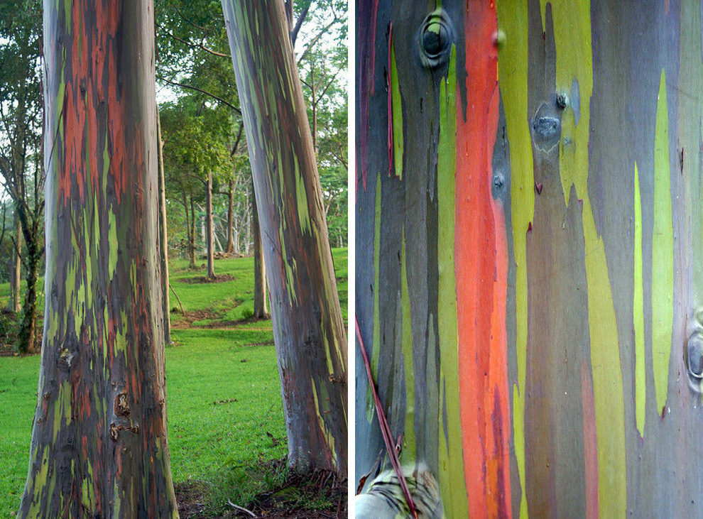 레인보우 유칼립투스라고 알려진 이 나무는 동물들이 털갈이를 하듯이 자신의 껍질을 매년 가는데,