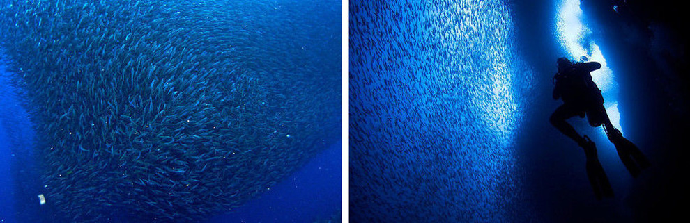 수십억 마리의 청어 떼들은 매년 5~7월 사이 남아프리카 해안을 따라 북쪽으로 이동합니다.