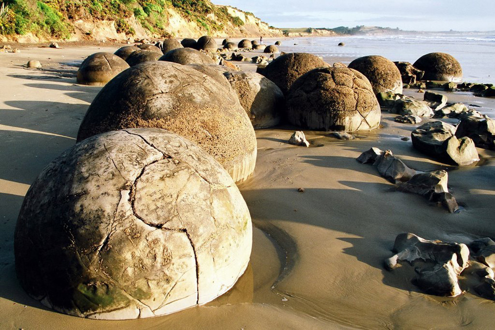 공룡의 알처럼 보이기도 하는 이 거대한 구슬은 뉴질랜드 해안이 있으며 지름은 1~6m까지 다양합니다.