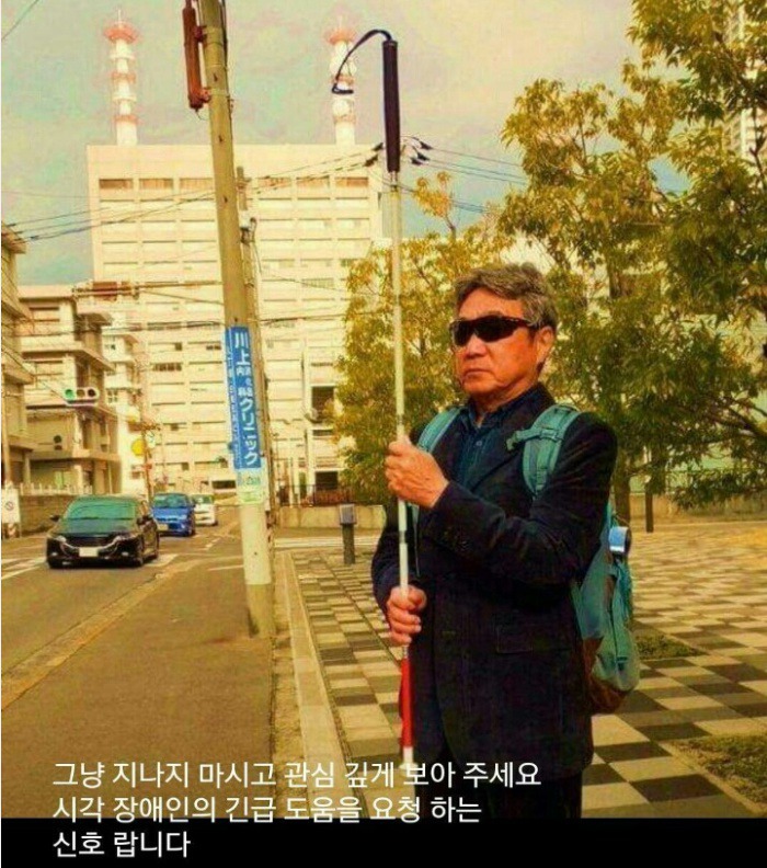 시각 장애인의 SOS 작성자길리성|작성시간20.03.09|조회수38 목록 댓글 0 글자크기 작게가 글자크기 크게가 [정보공유] "시각 장애인들의SOS"혹시 이런 장면을 본적들이 있는가?시각장애인이 지팡이를 거꾸로 들고제자리 서 있을때는 위급 또는 응급상황임을 알리는 SOS 신호인데신호란것이쌍방에 의해 약속되어야 함에도무관심으로 인해 저들만이 애타게신호를 보내고 있는것이 아닌지앞으로 저런 광경을 보면 꼭 다가가서도움을 줄수 있는 우리가 되었으면하는바램에 올려봅니다. 자료 더보기 다음검색 현재 게시글 추가 기능 열기 북마크 공유하기 신고 센터로 신고 댓글 댓글 0 댓글쓰기 답글쓰기 댓글 리스트
