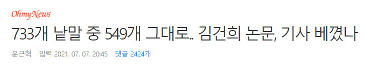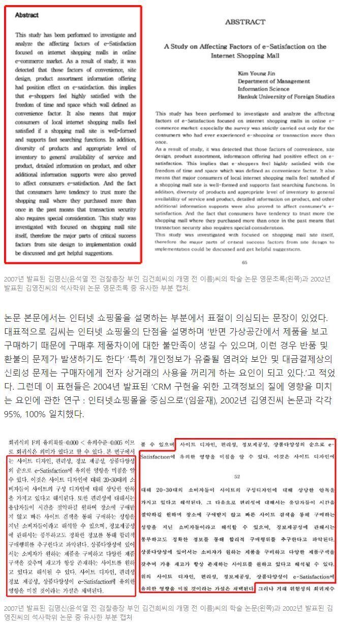 김건희 또 다른 논문, 영문 초록 한 문장 뺀 94% 표절 의혹