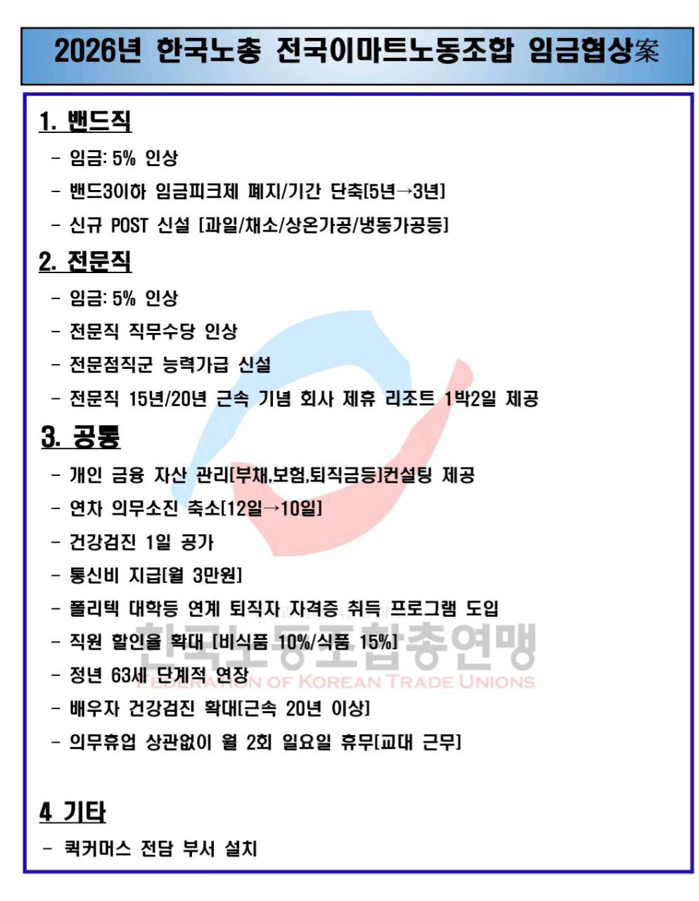 2026한국노총 전국이마트노동조합 임금협상 案 작성자마트산업 이마트노동조합|작성시간26.02.02|조회수323 목록 댓글 0 글자크기 작게가 글자크기 크게가 다음검색 현재 게시글 추가 기능 열기 북마크 공유하기 신고 센터로 신고 댓글 댓글 0 댓글쓰기 답글쓰기 댓글 리스트
