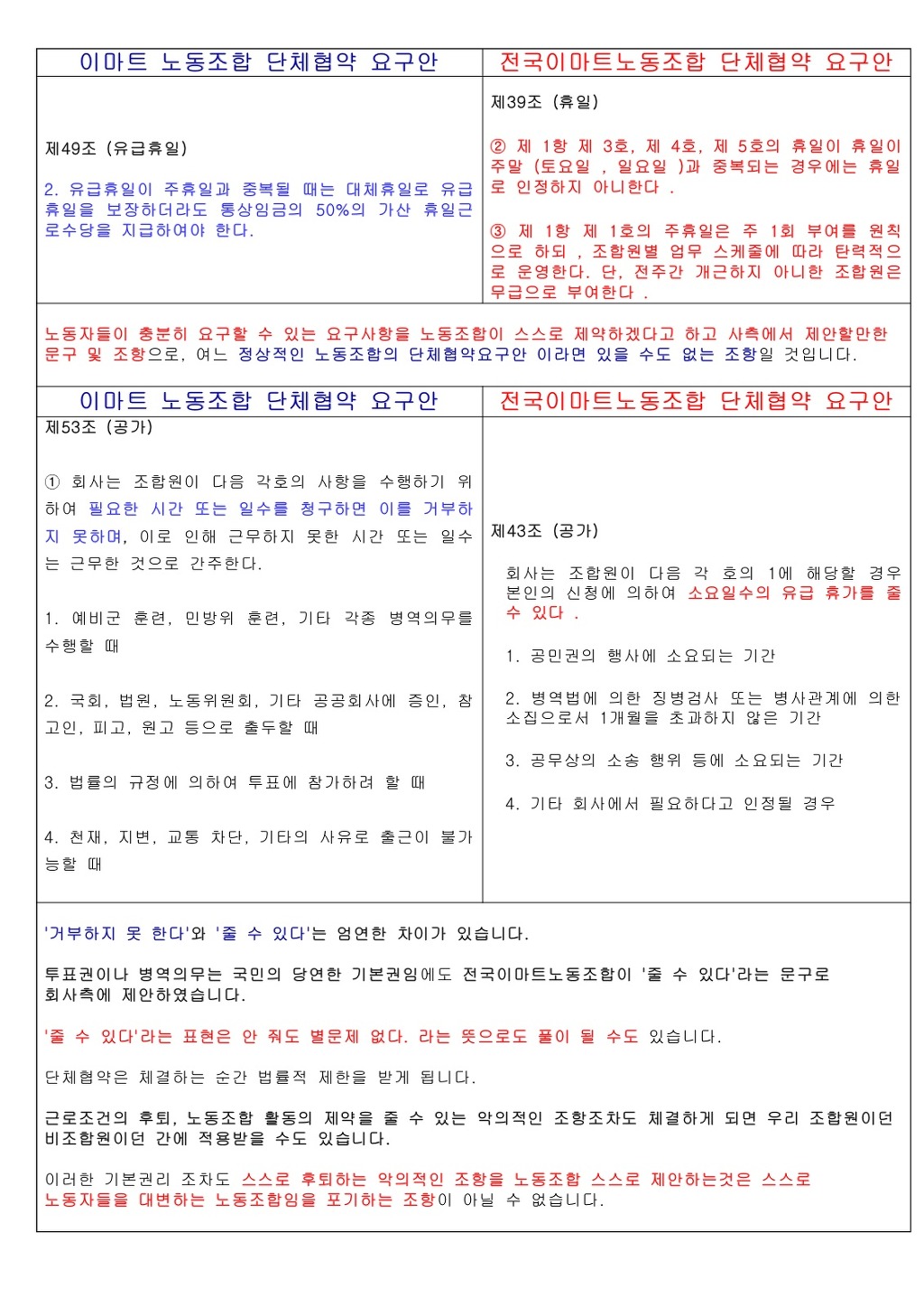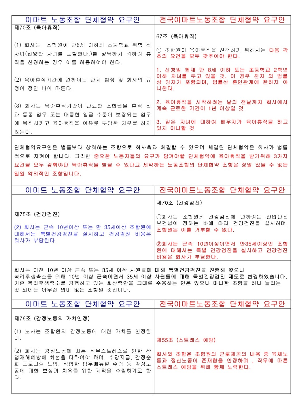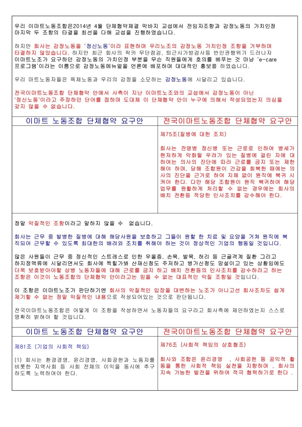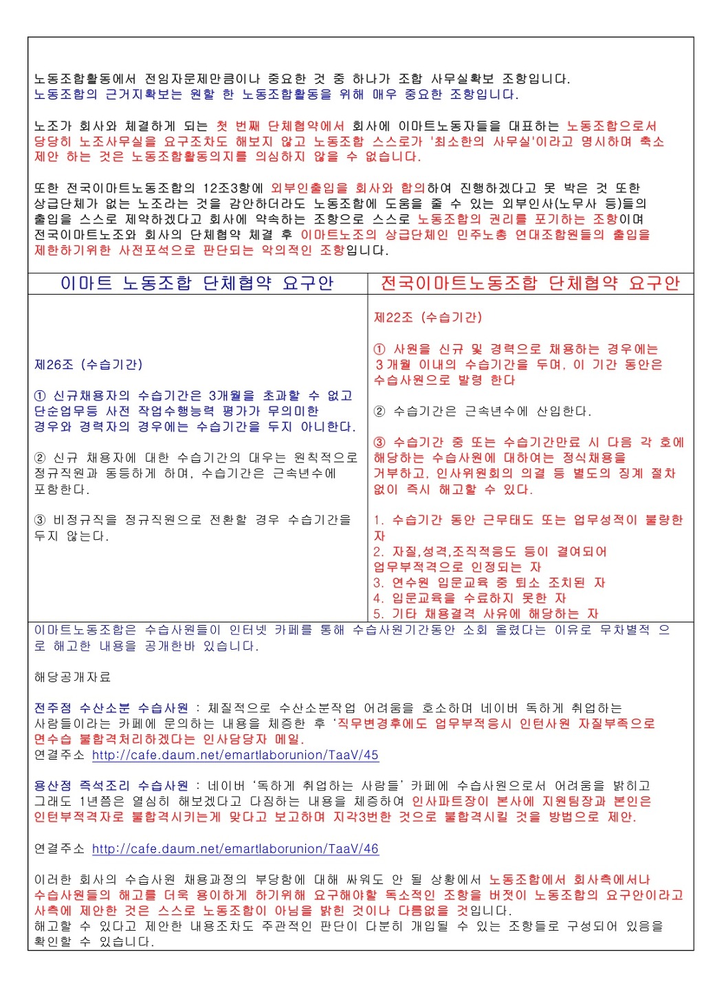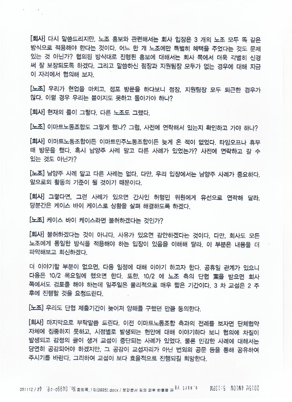 이마트노동조합의견 |