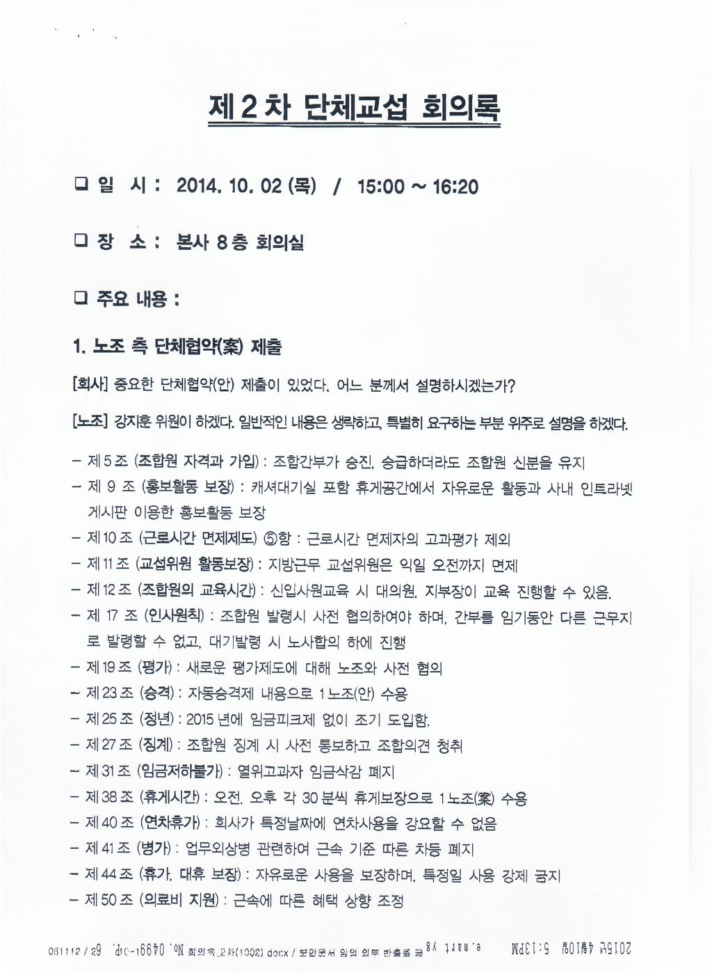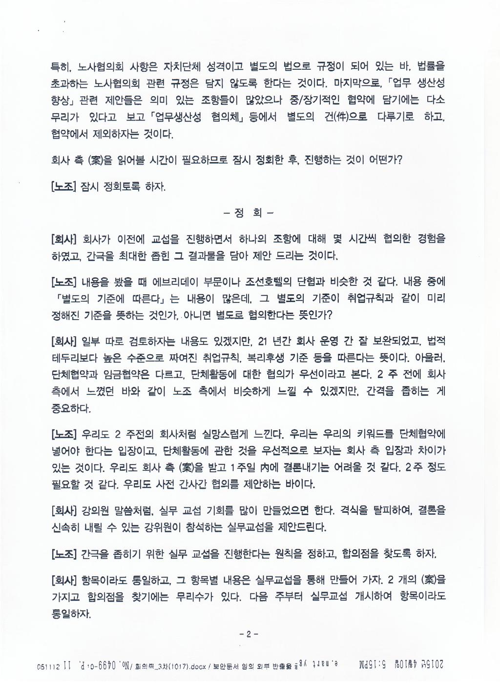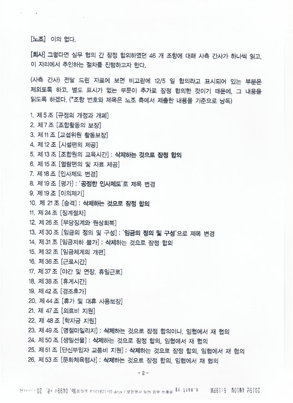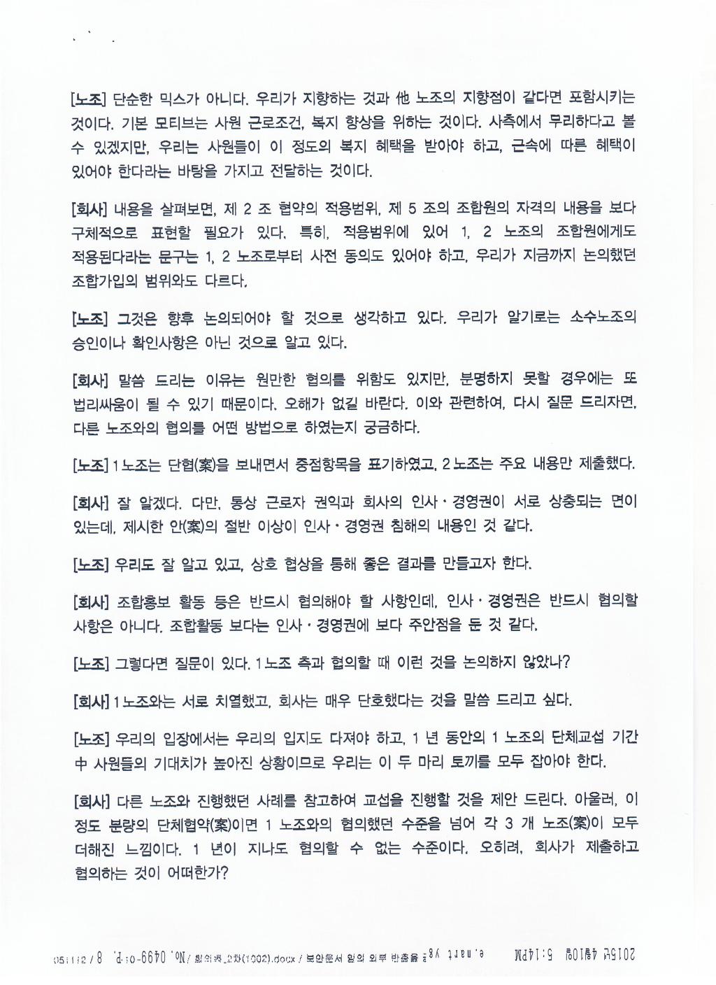 실질적인 내용은 보장받고 문구상 경비원조 등 부당노동행위의 문제가 될 수 있는 부분을 수정하여 합의함. |