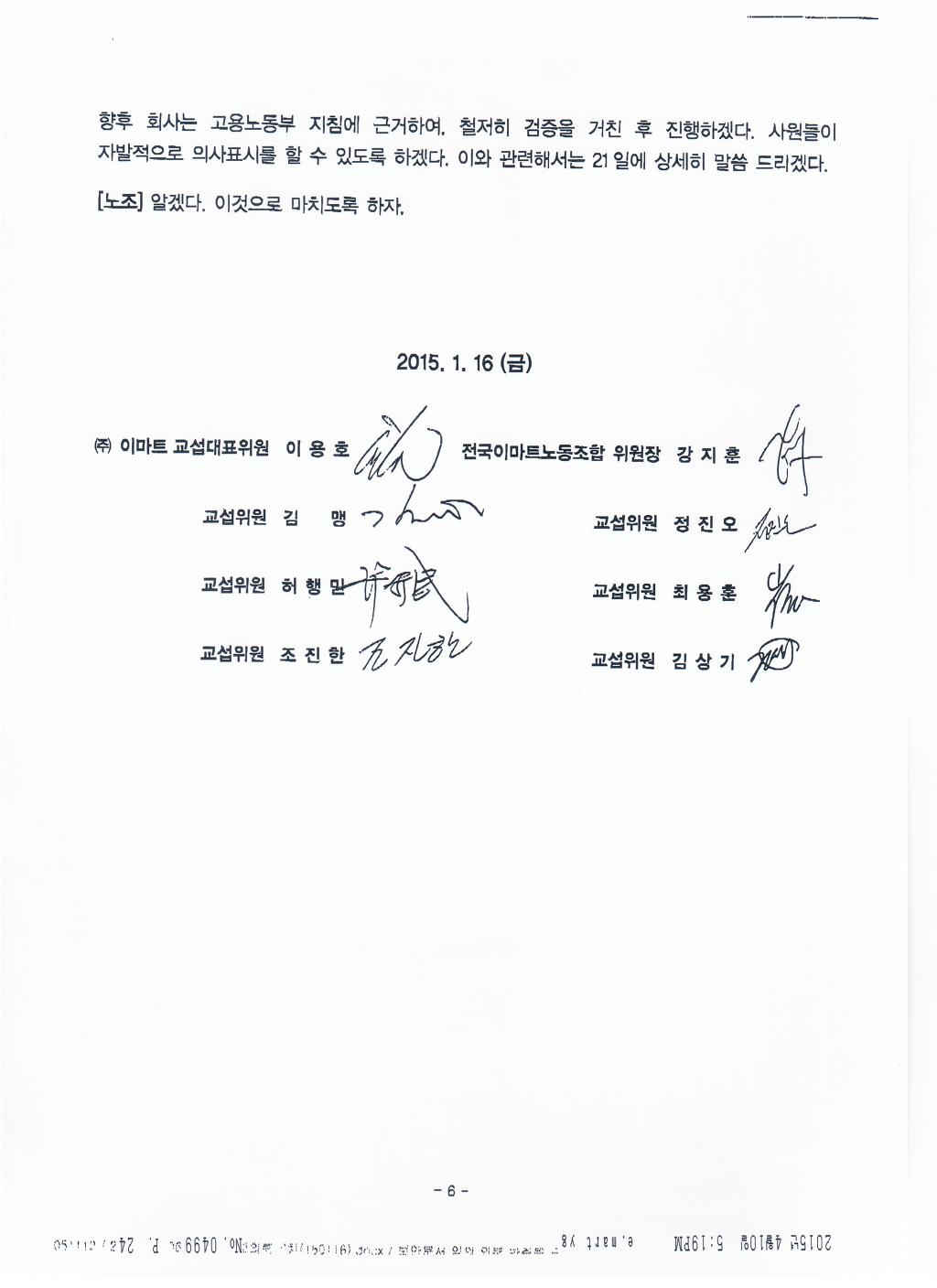 회사와 전국이마트노동조합 잠정합의안 |
