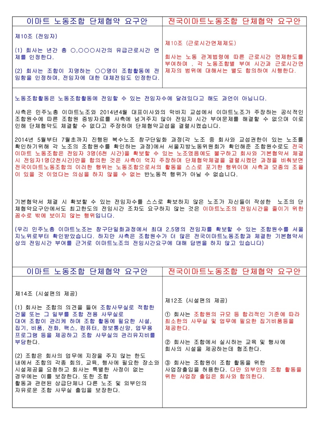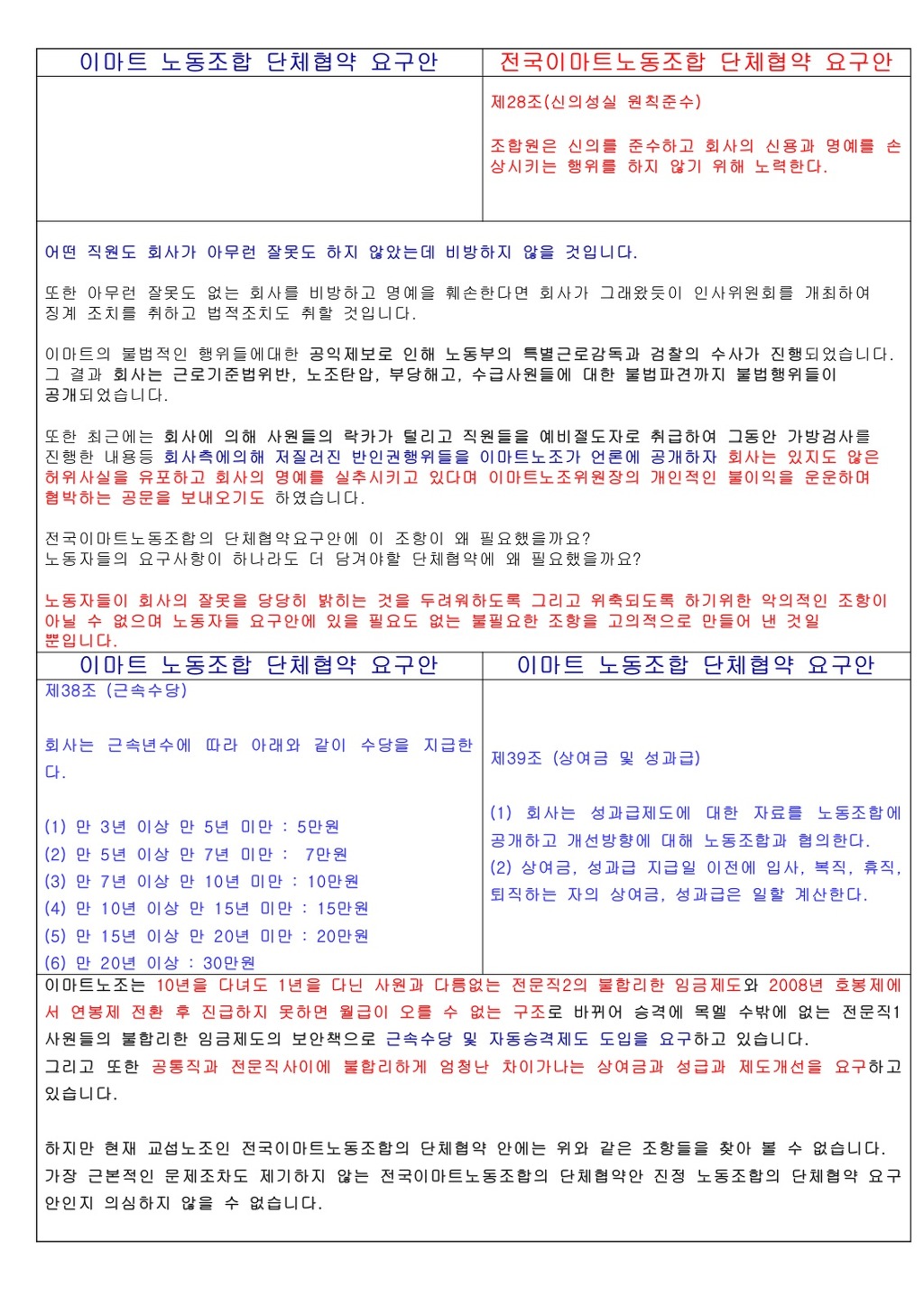 전국이마트노동조합 단체협약 요구안 |