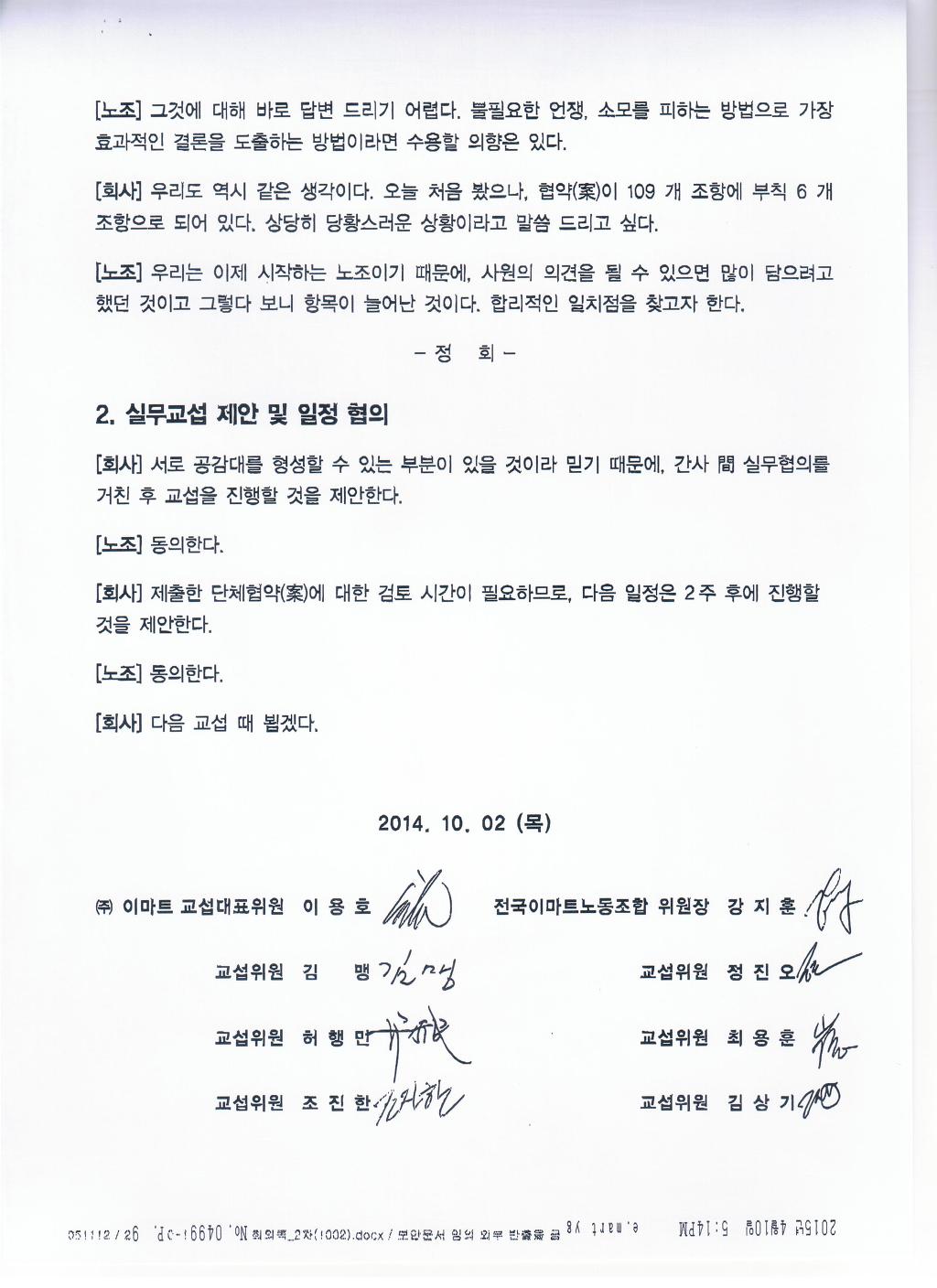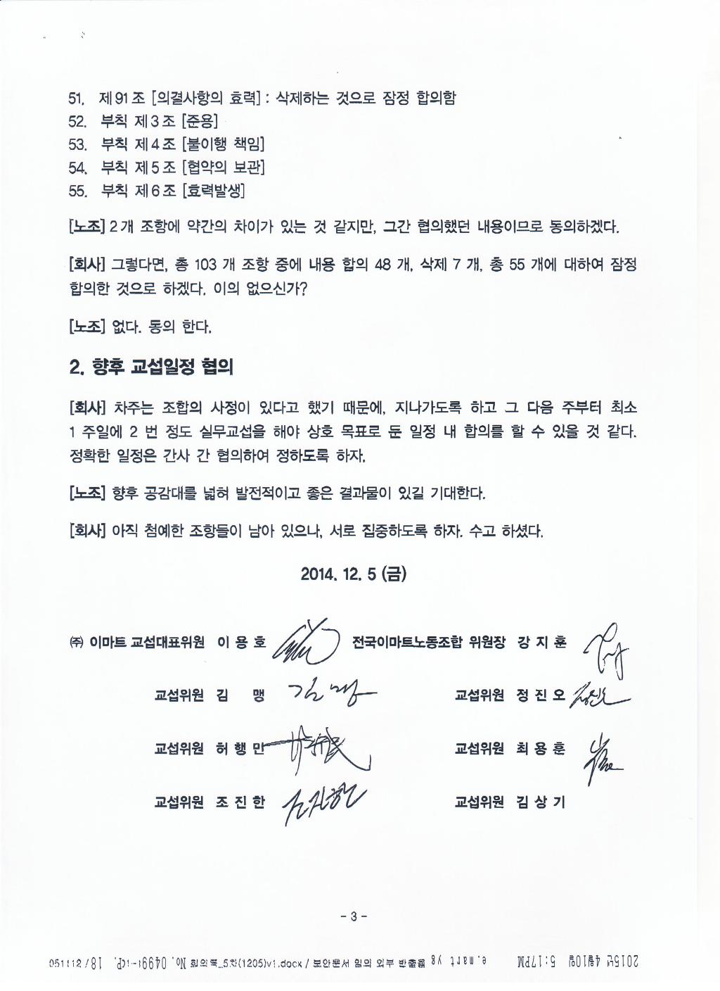 본인들이 밝힌 이러한 교섭과정을 통해 불과 두달여만에 이마트노동자들을 위해 95개 조항을 잠정 합의할 수 있는지, 우리 이마트노동자들을 진정 대변하고 회사측과 교섭하고 있는 노동조합인지 판단하십시요!!