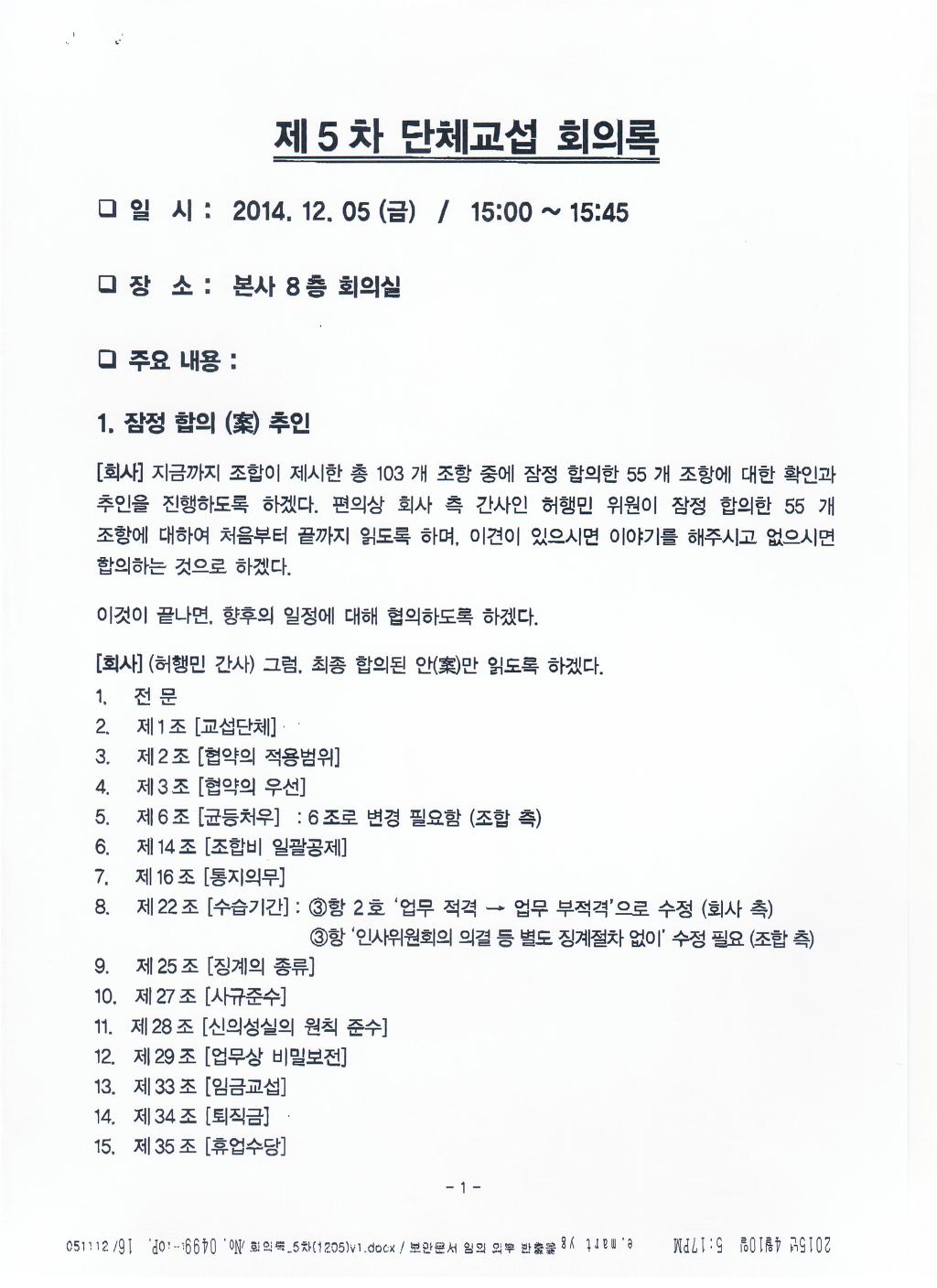실질적인 내용에 차이가 없는 선에서 요구안을 수정하여 조합과 조합원이 자료의 열람/제공 요청을 할 수 있는 근거를 확보하여 합의함. |