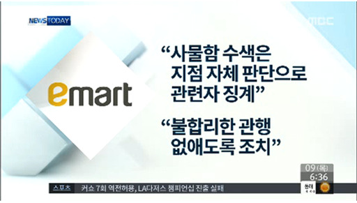 이런 가운데 이마트 측은 "사물함 수색은 지점의 자체 판단으로, 관련자들을 징계 조치했다"며 "사물함과 가방 검사 등 불합리한 관행은 없애도록 했다"고 밝혔습니다.