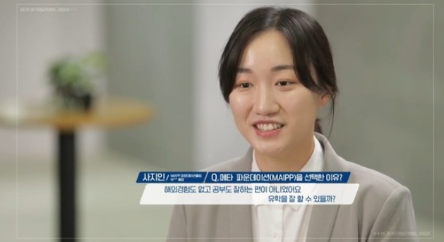메타 파운데이션(MAIPP)을 통해 미국 W대학 졸업까지 마친 사지인 학생은 “해외 경험도 없고 공부를 잘 하는 편이 아니었다. 메타 프로그램을 통해 1년 동안 미국학교에서 배우는 1학년 과정을 똑같이 진행했고 토론, 에세이 등 현지에 나가서도 적응할 수 있도록 다양하게 배울 수 있었다. 메타 파운데이션을 통해 2학년으로 무사히 진학하고 4학년 학사 학위까지 무사히 끝마칠 수 있었다”며 메타 파운데이션을 선택하게 된 이유를 설명했다.