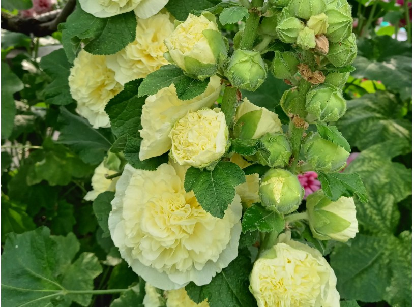 꽃의 지름 7센티 정도의 커다란 겹꽃이