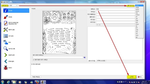 2. 만화압축파일로 변환된 .cbz 를 eBook 파일인 .ePub로 변환했다.