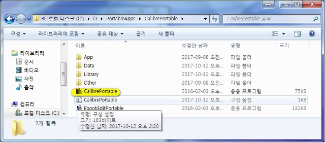 'Calibre'의 메뉴는 대충 쉽게 만들어져 있으니,