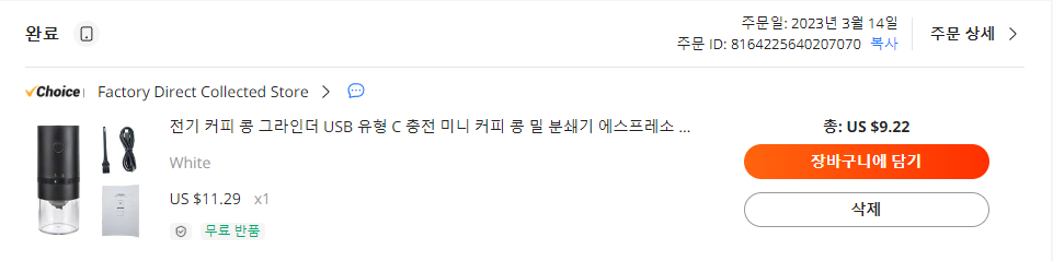 : 한국에서의추억.20230317.알리익스프레스(Aliexpress) 전동 커피그라인더(Electrical Coffee Grinder)