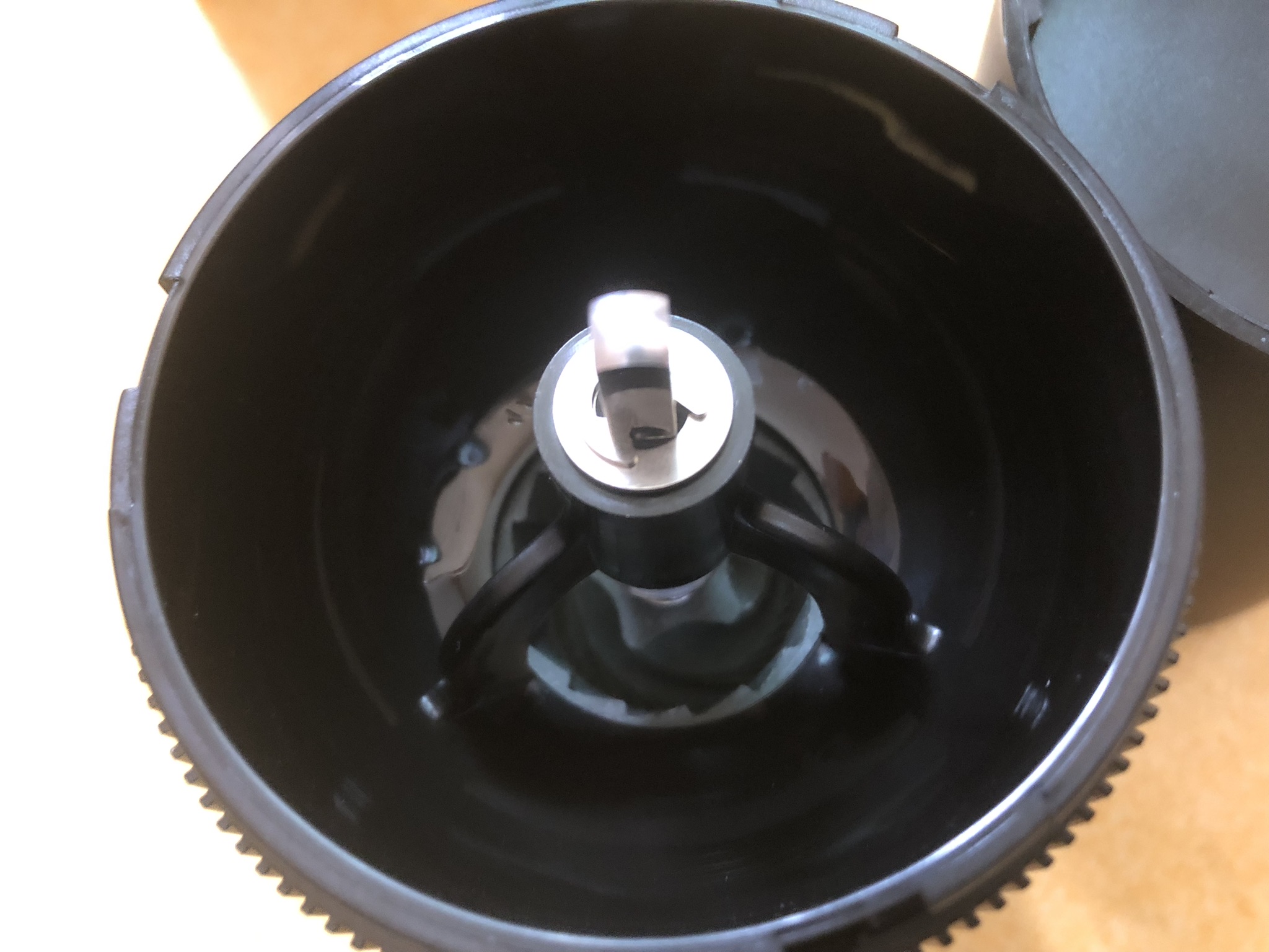 위쪽에 아마도 모터가 있을 거고, 아랫쪽은 저렇게 맷돌같은 커피콩을 가는 장치가 있다.