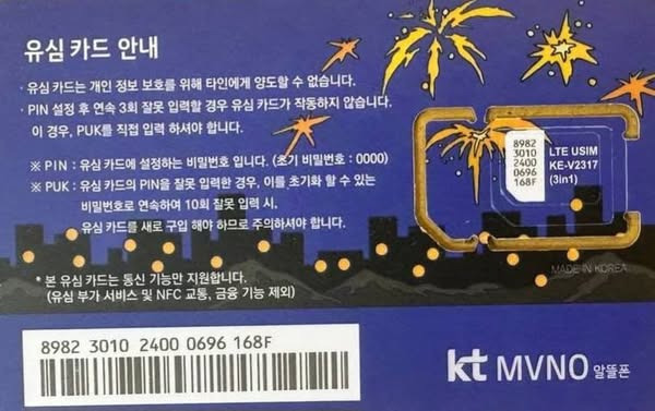 3개월 무제한 사용, 한국 도착 후 2시간 사용 후 바로 유심 처리