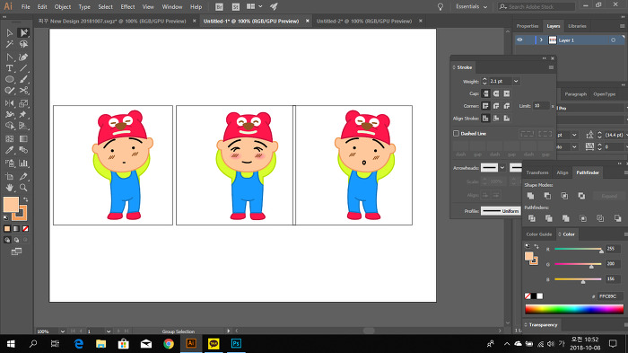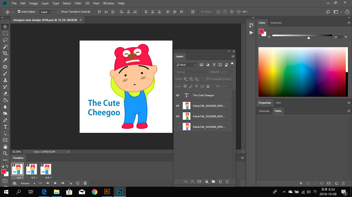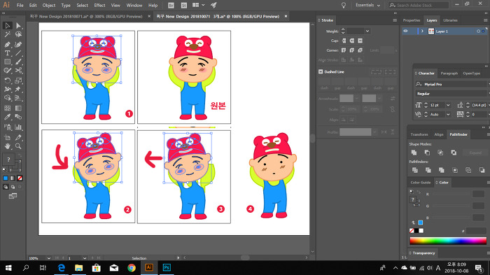 귀여운 찌꾸(The Cute Cheegoo) 캐릭터 이모티콘 움짤을 만들어 봤습니다. 일러스트레이터에서 툴을 사용하여 작업하는 것은 모두 알 거라고 생각하고 중요한 부분에 대해서만 얘기하겠습니다.