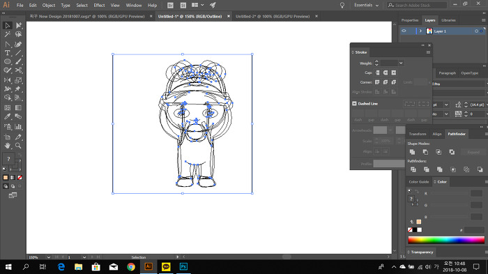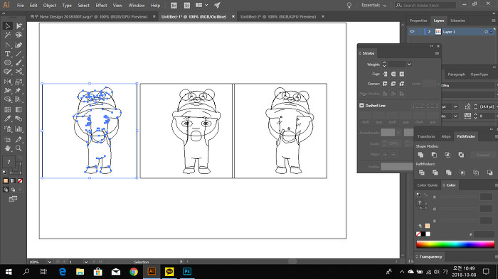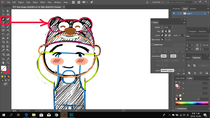 2. 일러스트레이터에서 펜툴로 스케치한 밑그림을 땁니다. 이때 선의 컬러를 다르게 하면 더욱 좋습니다.