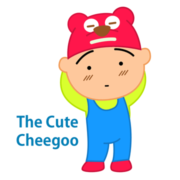 ** 참고로 캐릭터이모티콘 옆의 움직이지 않는 <The Cute Cheegoo> 글씨는 레이어 맨 위에 놓은 것입니다. 이렇게 해 놓으면 캐릭터 이모티콘 동작은 바뀌어도 글자는 그대로 있게 됩니다.