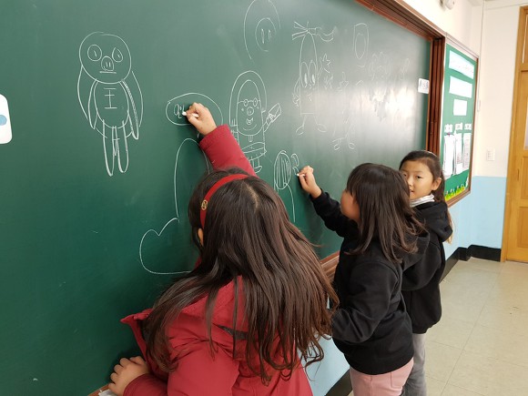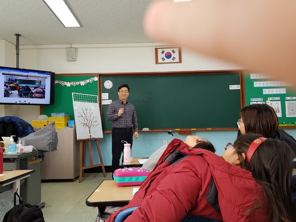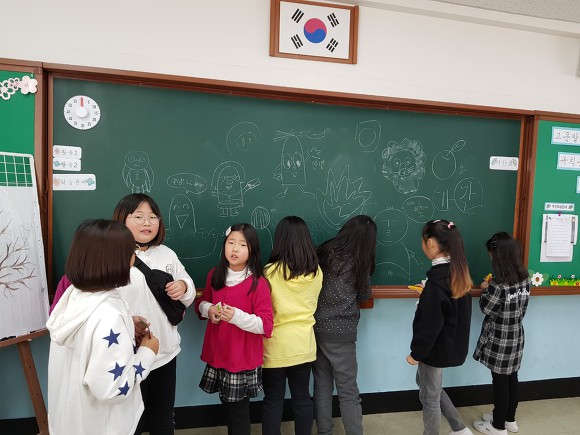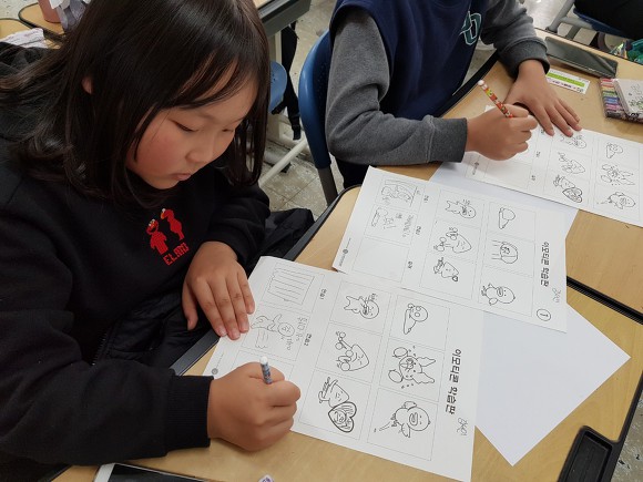2019년 12월 3일 화요일 부산시 사하구에 소재하고 있는 승학초등학교에서 18명의 저학년들과 함께 송낙웅교수님이 강사로 참여하여 캐릭터제작 기법과 이모티콘(움짤) 수업"을 오전 10시 40분부터 12시 10분까지 2교시 수업을 하였습니다.