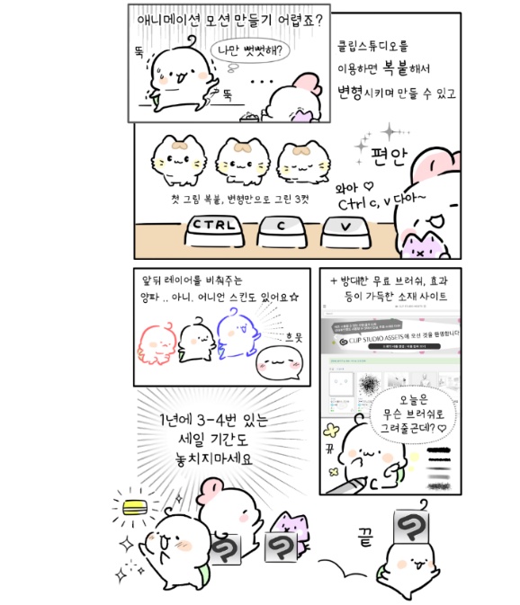 제가 클립스튜디오를 사용해서 이모티콘을 만들면서 알게된 중요한 내용들은 다 들어있는 것 같아요.