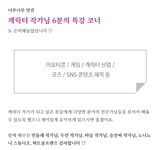 캐릭터 분야의 여러 노하우들을 아낌없이 나눔하여 주셨답니다.