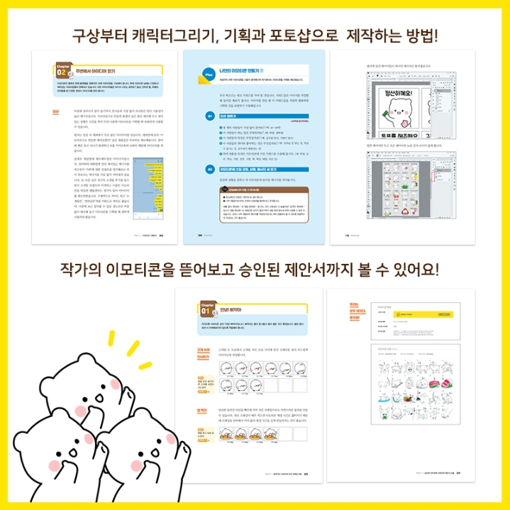 책 안에는 이모티콘 제작을 꿈꾸던 모두의 갈증을 해결할 수 있는 내용들을 꾹꾹 눌러 담았습니다!