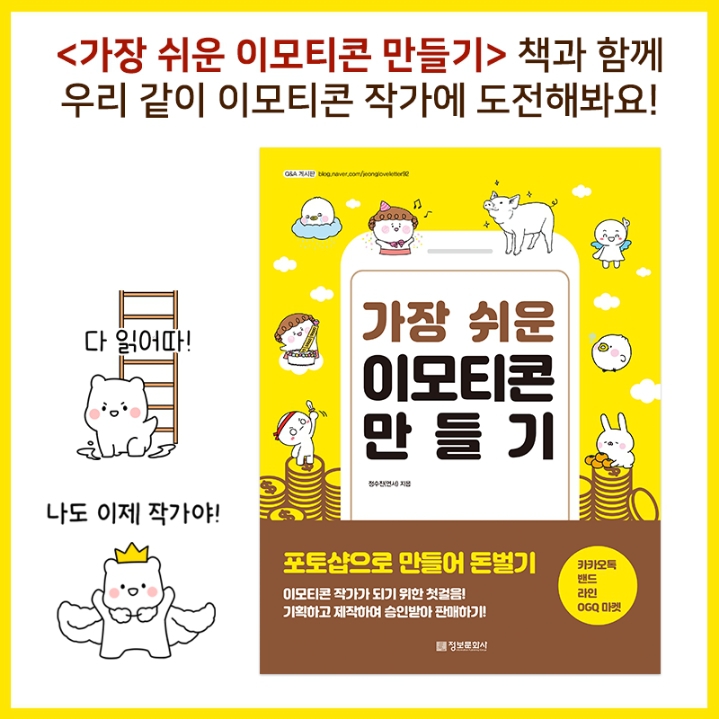 드디어 제가 쓴 '가장 쉬운 이모티콘 만들기' 책의 판매가 시작되었습니다!
