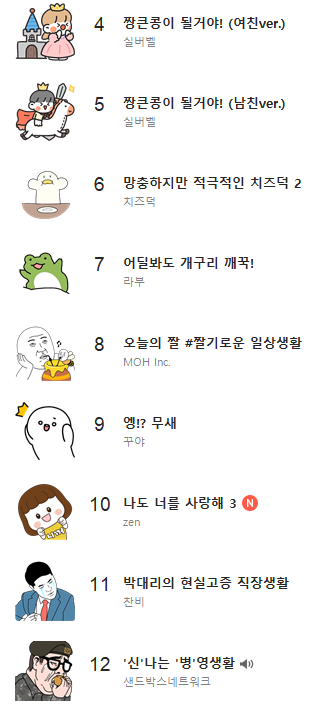 푹 쉬고서 오랜만에 하는 분석인데, 순위가 거의 변동이 없네요.