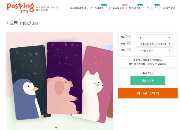 50장인가 60장이던가... 디자인을 자유롭게 정해서 여러종류고 인쇄해줘요.