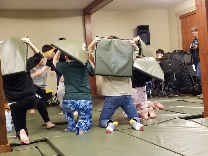 우와 정말로 신나게 방석으로 배게싸움을 하고 있는 우리 학생들의 모습!!!