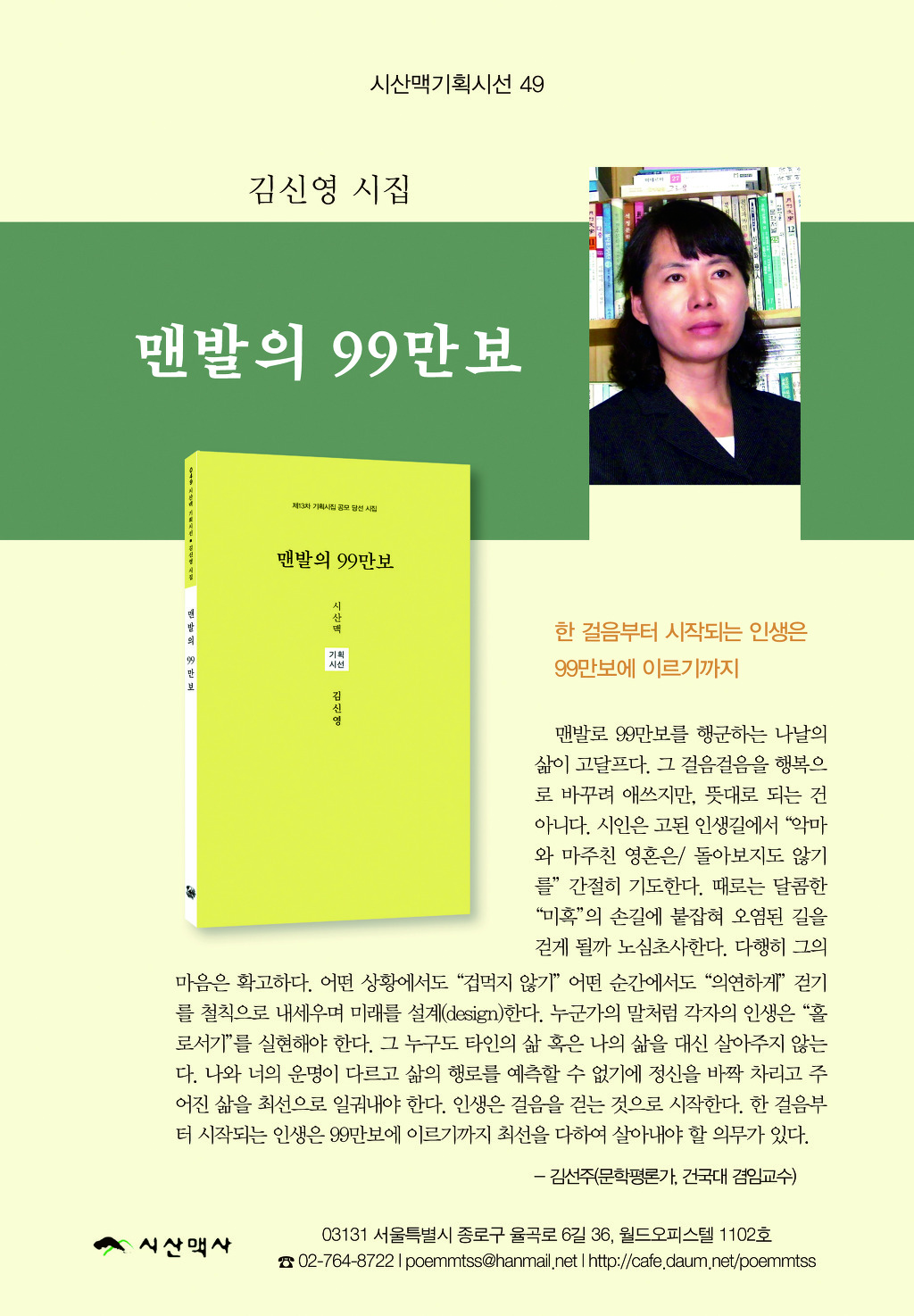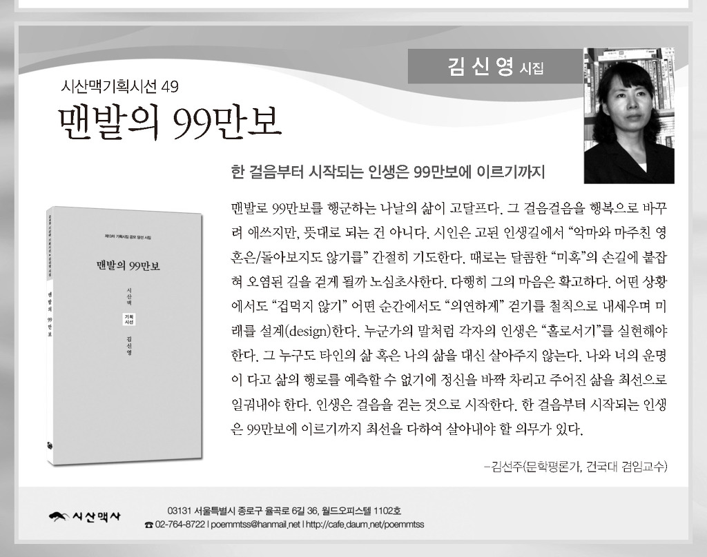 광고-김신영 시집-맨발의 99만보 작성자두레문학|작성시간17.09.17|조회수30 목록 댓글 0 글자크기 작게가 글자크기 크게가 다음검색 현재 게시글 추가 기능 열기 북마크 공유하기 신고 센터로 신고 댓글 댓글 0 댓글쓰기 답글쓰기 댓글 리스트