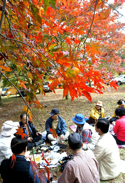 농부들은 기울어가는 햇볕에 물든 늦가을 풍경을 바라본다. 언제나 이맘때면 허전해 지는 마음. 땀방울로 자란 벌판의 누런 알곡들이 빈 가슴을 채워준다./ 사진 =우제용씨(강원도 춘천시 사농동)