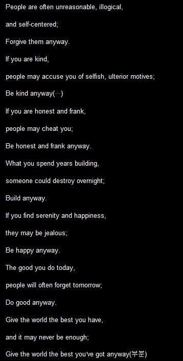 그럼에도 불구하고 용서하고,친절하고, 정직하고, 솔직하고,