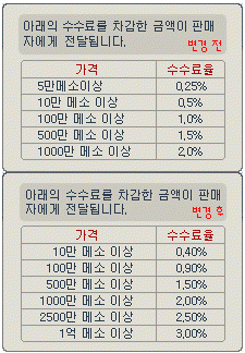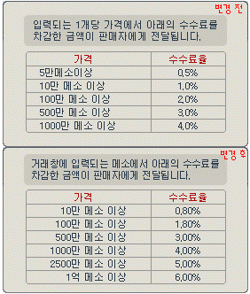 4. [T12166]개인간 메소 거래 및 상점 판매 시, 수수료율이 조정되었습니다.