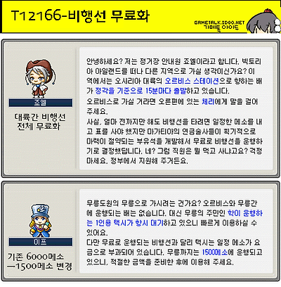 1. 비행선 이용 요금이 대폭 하향되었습니다. 메이플 아일랜드를 제외한 모든 지역에서 티켓을 구매하지 않고 무료로 비행선을 이용하실 수 있습니다.