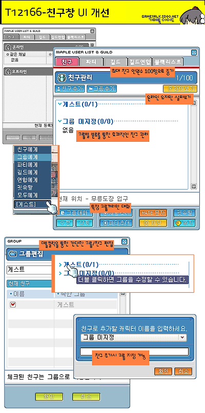 - 친구 창에 그룹을 추가하여 친구관리를 할 수 있습니다.