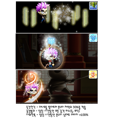 ├ 능력 : 물리방어력 +30, 마법방어력 +30, STR +3, DEX +3, INT +3, LUK +3, 회피율 +9
