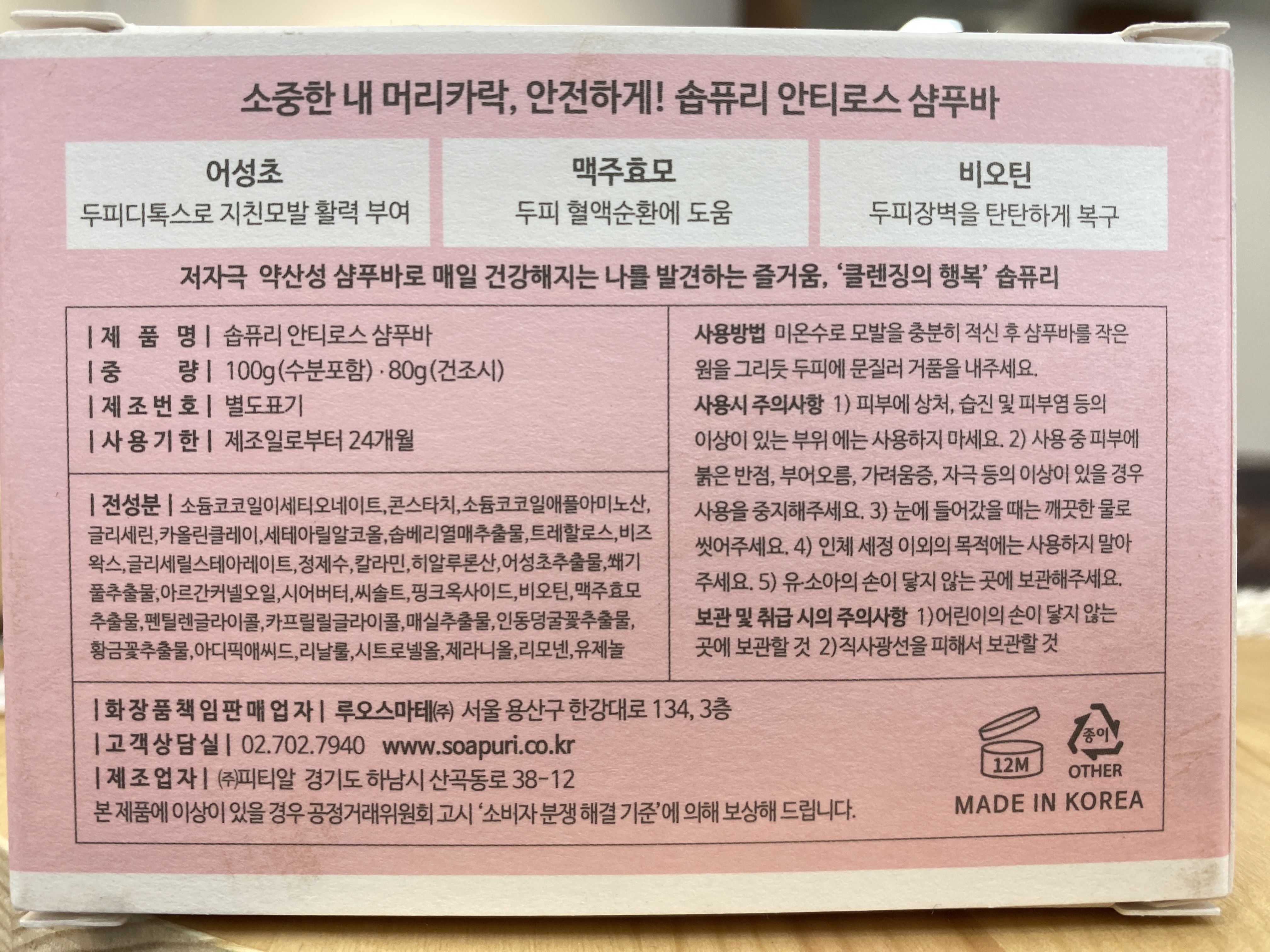 4. 소중한 내 머리카락, 안전하게! 안티로스 샴푸바입니다. 어성초, 맥주효모, 비오틴이 함유되어 있어서 소중한 내 머리카락 손실을 줄이는데 조금이나마 도움이 되도록 만들어졌습니다. 향도 매우 좋고요. (소리없이 꾸준히 간택당하는 아이들 중 하나입니다.)