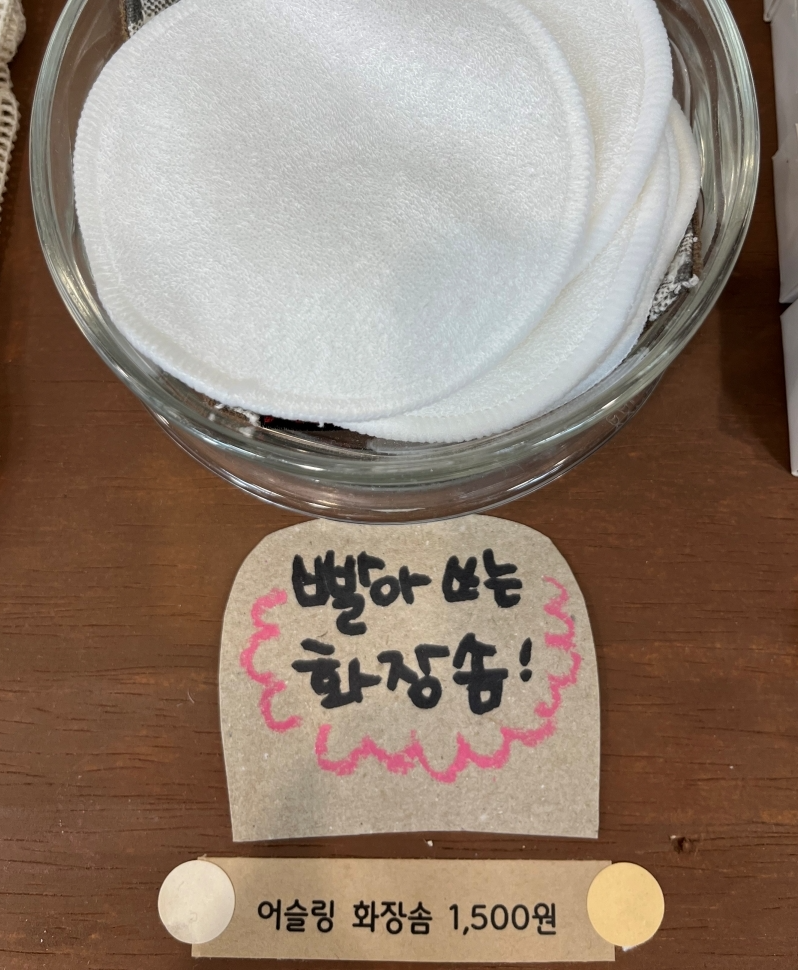3. 빨아쓰는 화장솜 1500 : 화장 지울 때 버려지는 화장솜들이 많지요? 화학성분이 들어가 있는 일회용 솜 사용 줄이고 오래도록 사용가능한 패브릭 화장솜을 써보세요. 과탄산가루와 세탁비누가 있다면 빨아 쓰는 것도 그렇게 번거롭지 않아요!