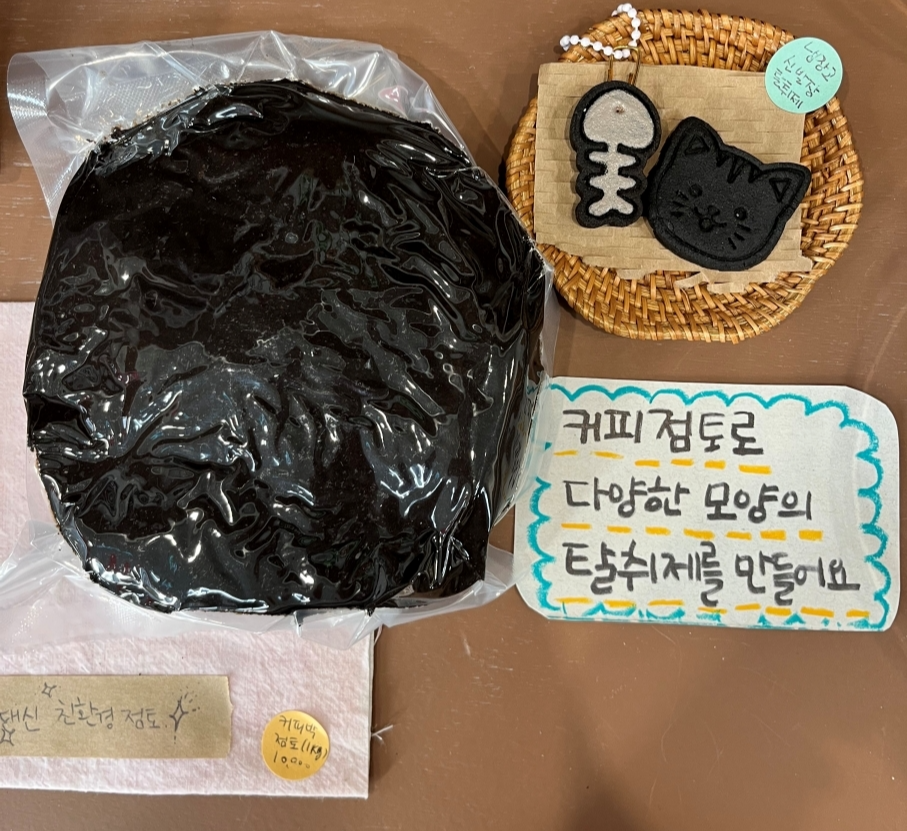 7. 커피박 점토 200g 5000원: 아이들이 너무 좋아하는 슬라임을 대신해 조물조물 만들기놀이 할 수 있어요. 촉감도 좋구요, 예쁜 틀에 찍어 말려서 신발장이나 냉장고에 넣어 탈취제로 사용해도 좋아요.