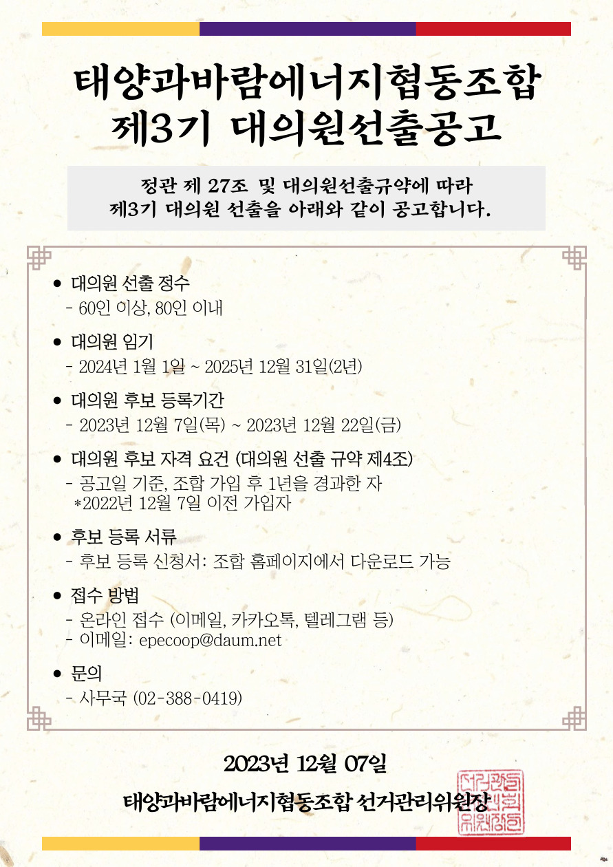 ④ 대의원선출 결과공고 : 2023년 12월 28일 (목)
