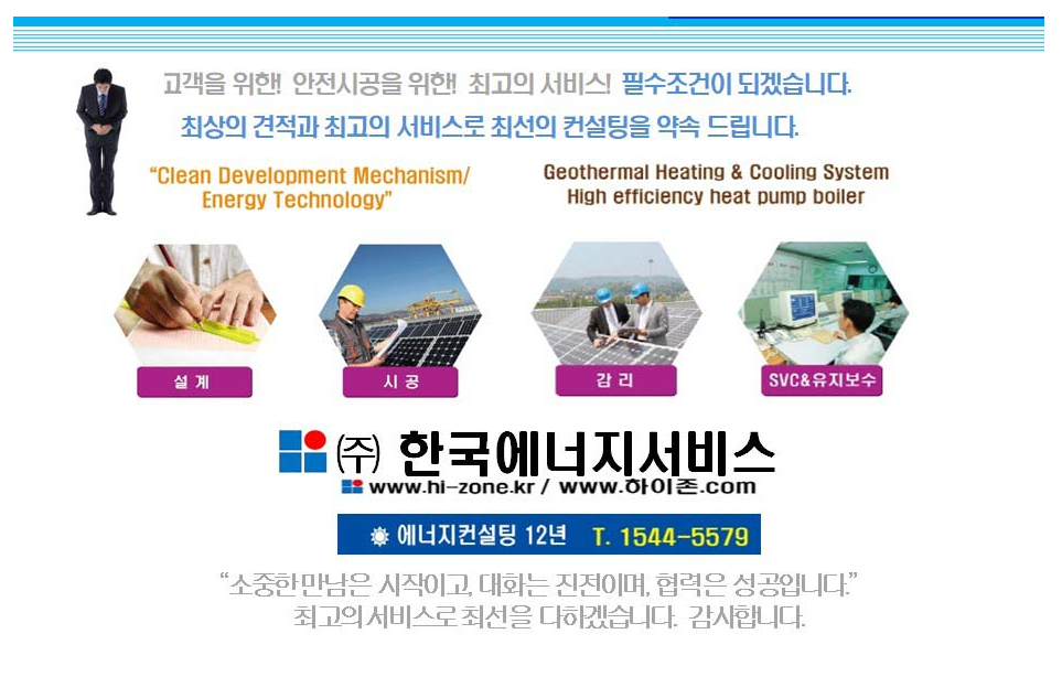 당사에 사업 예정이신 현장의 지번만 제공해 주신다면 해당 부지의 인허가 가능여부 확인을 시작으로 한전 선로 용량 체크, 설계 및 도면 작업, 투자 대비 수익성 분석까지 무상으로 컨설팅견적을 해드리고 있는 만큼 예비 사업주님들의 많은 관심과 성원 부탁드립니다. 기타 궁금하신 사항은 전국대표번호 또는 컨설팅 담당자에게 문의주시면 친절하게 답변드리겠습니다.