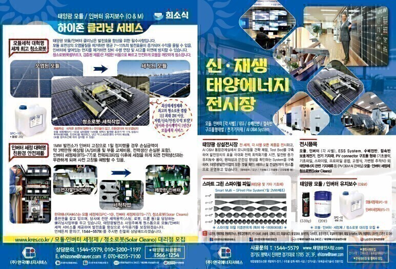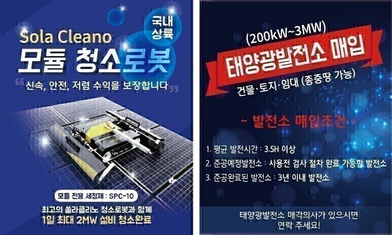 접속함, 구조물, 각종 청소 용품 등 태양광발전소 시공 및 유지관리에 필요한 일체의
