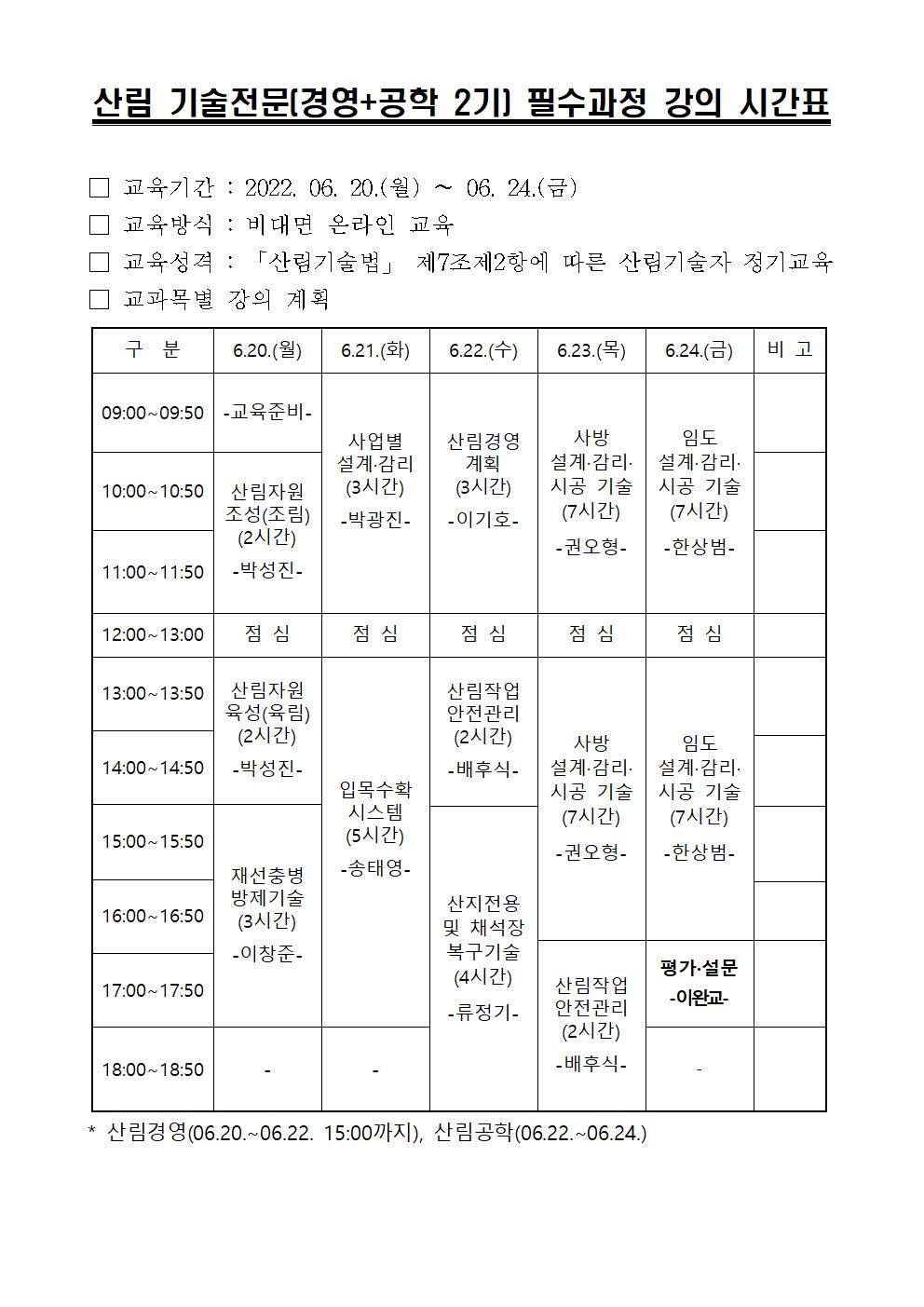 “2022년 산림기술자 13차 경영+공학기술교육(비대면)”과정 6/07(화)까지 신청