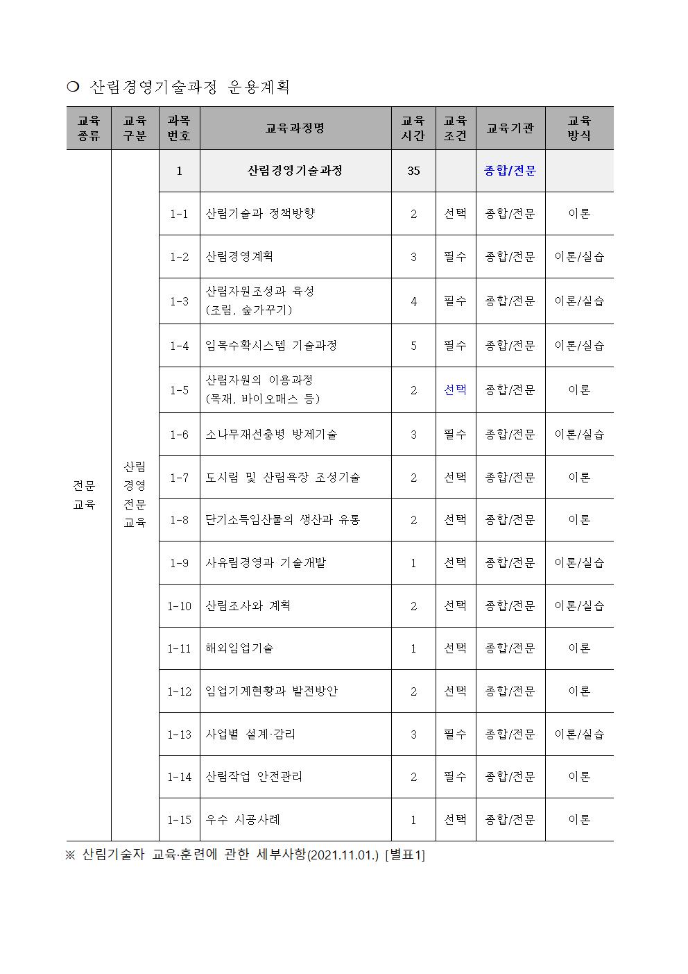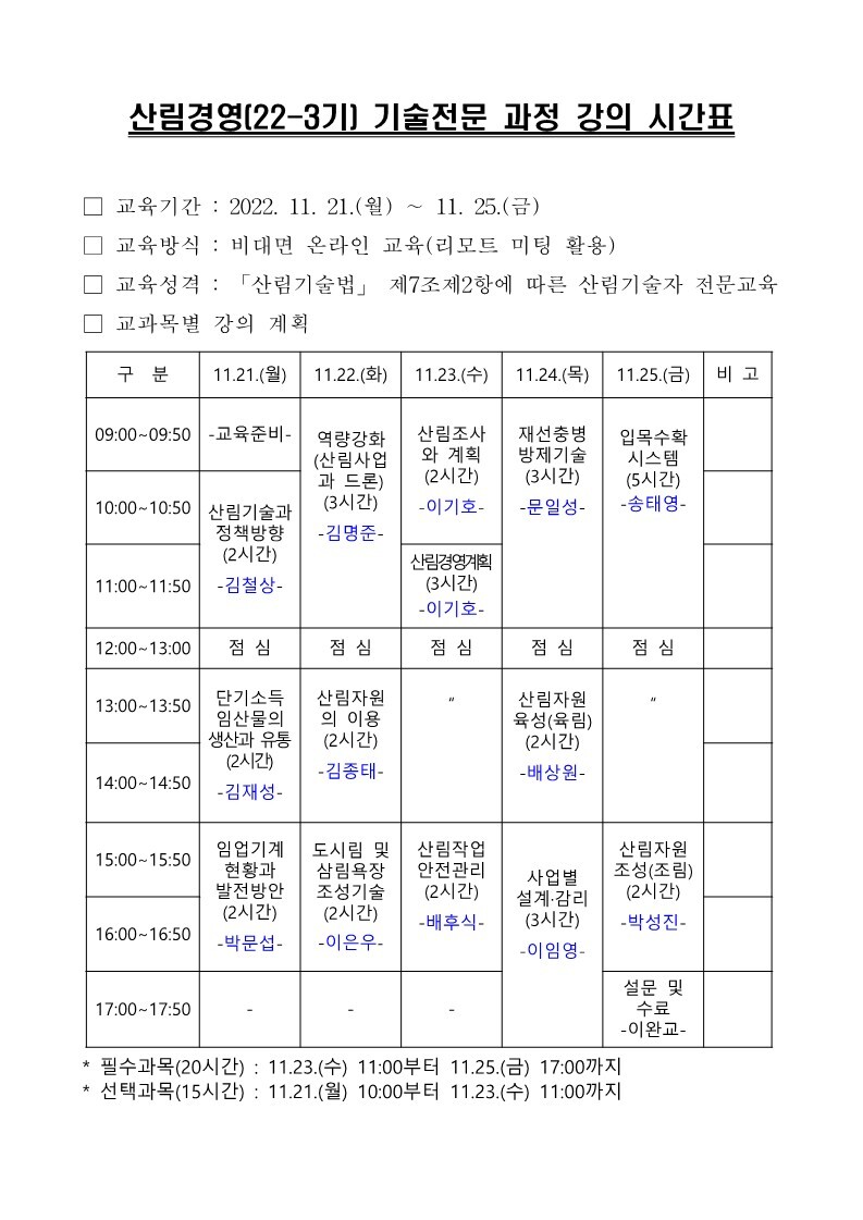 • 교 육 명 : 제 3기 산림경영기술전문과정(필수+선택 35시간)
