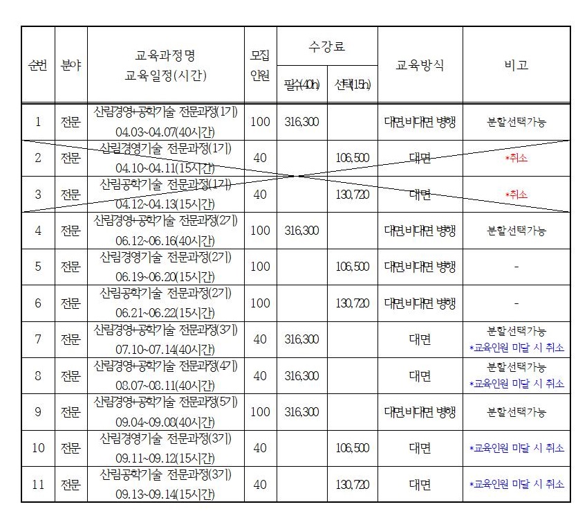안녕하세요. 한국산림엔지니어링협회 산림기술교육원 입니다.