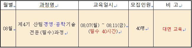 "2023년도 08월 산림기술자 전문과정 교육"을 아래와 같이 계획하오니 많은 지원바랍니다.