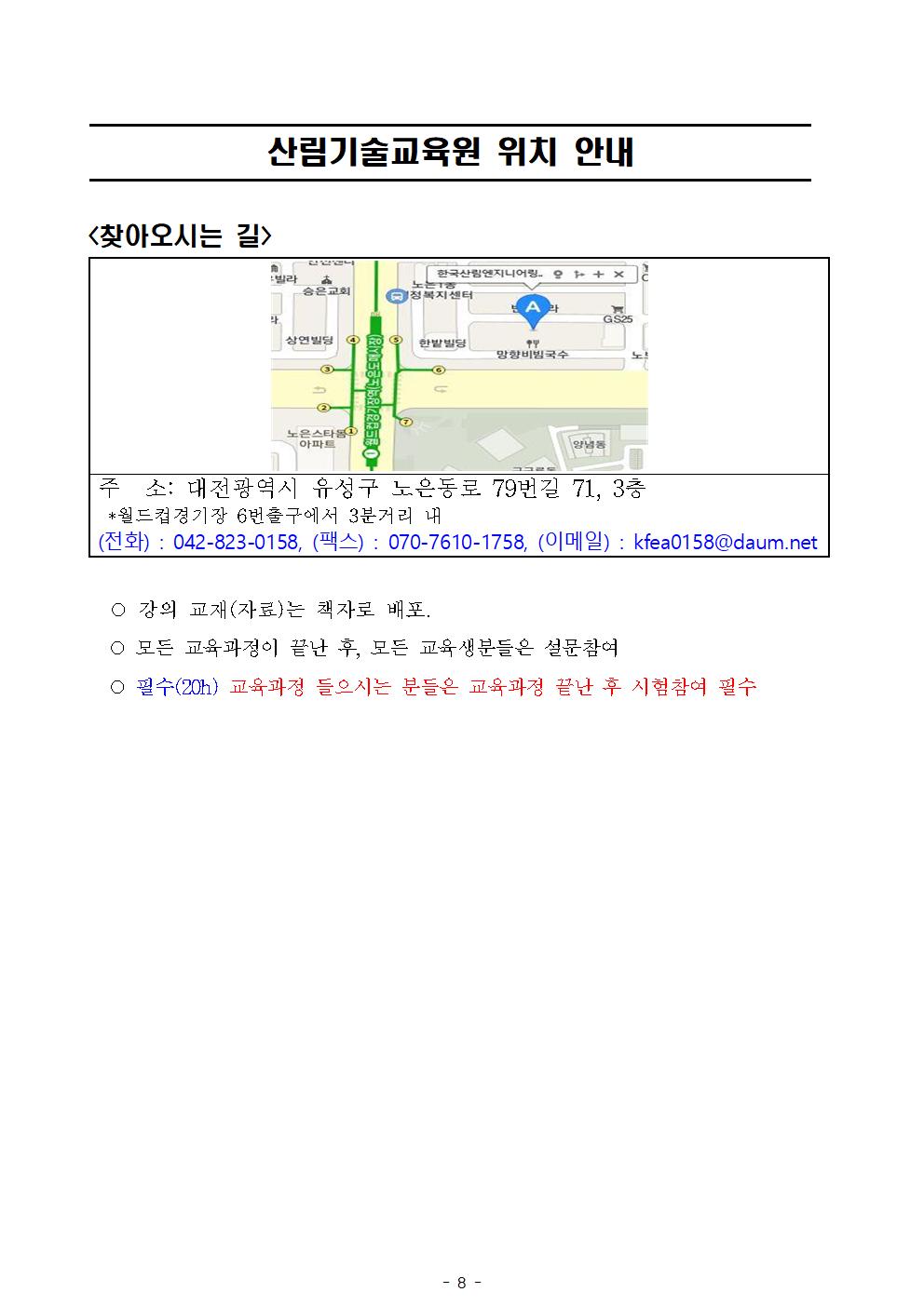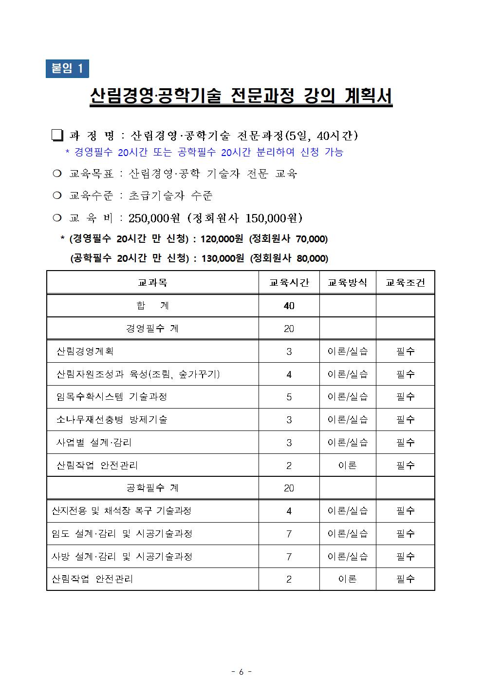 안녕하세요. 한국산림엔지니어링협회 산림기술교육원입니다.